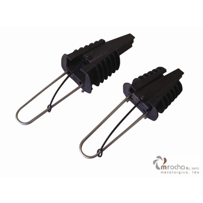 Utilização: Em baixadas ou ramais de 2, 3 ou 4 condutores idênticos em cabo torçada. Corpo e Cunha em material plástico de elevada resistência mecânica e climática; Gancho em aço inox (AI).